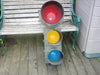 Old metal traffic signal. All parts work. Lenses intact. Uses standard lightbulbs. You’ll need to do some simple wiring to hook up the three different lights to house current, but it’s not hard (I did...